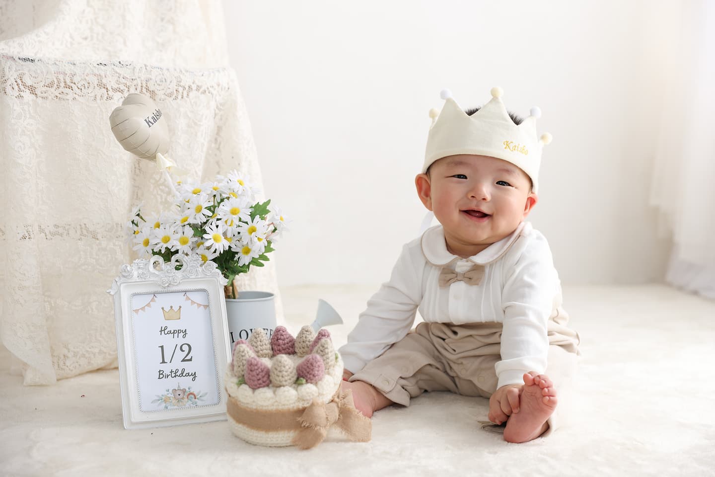 岡本にあるスタジオRe:birthにてマタニティフォト、ハーフバースデー、お誕生日写真などを撮影いたします。